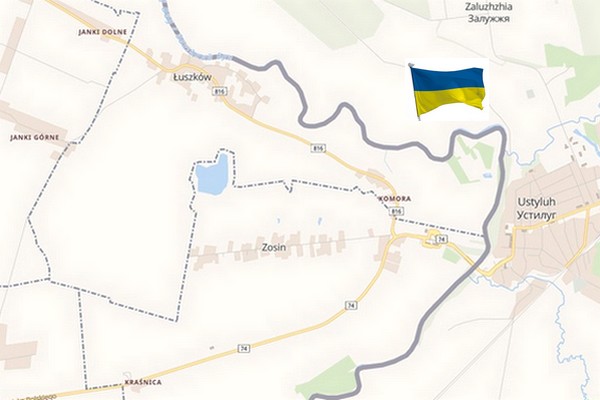 C’est “kolanko Bugu/le coude du Boug” situé près du village de Zosin qui fait partie de la commune de HorodÅo dans la voïvodie de Lublin. Le village est un passage frontalier entre la Pologne et l’Ukraine. Au temps de l’URSS, cet endroit de la frontière polono-soviétique était un point de passage frontalier simplifié : on pouvait l’utiliser avec un laissez-passer…