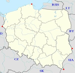 Comme vous le savez, la Pologne a des frontières communes avec sept pays : l’Allemagne (467 km), la Tchéquie (796 km), la Slovaquie (541 km), l’Ukraine (535 km), la Biélorussie (418 km), la Lituanie (104 km) et la Russie (oblast de Kaliningrad, 210 km).