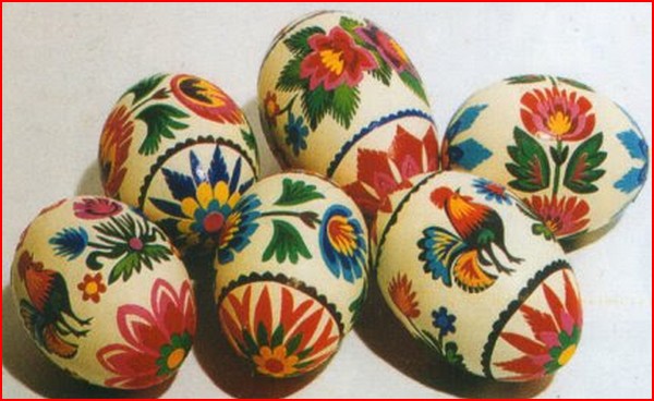 La période de Pâques est remplie de nombreux symboles, souvent issus du paganisme. Par conséquent, les œufs ont été adoptés par le christianisme comme symbole de la vie, du Christ ressuscité. À Pâques, il ne devait manquer d’œufs, surtout décorés. Le nombre d’œufs décorés dépendait de la richesse de la famille. Il fallait en préparer un nombre suffisant pour être bénis et ensuite donnés aux proches. Les jeunes filles préparaient également des œufs pour les jeunes gens qui se baladaient après le dyngus du lundi de Pâques avec un kogutek (coquelet) - coutume populaire consistant à tirer une charrette avec un coq artificiel autour du village. En offrant des œufs décorés aux garçons, les filles pouvaient leur exprimer leur sympathie. Plus elles donnaient d’œufs, plus le sentiment était fort…
