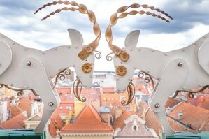 Posé au centre du Rynek, l’hôtel de ville de style Renaissance - Ratusz - avec sa grande façade à triple rangée d’arcades surmontée d’un attique où sont représentés les rois de la dynastie des Jagellons, attire la foule avec un drôle de spectacle. Chaque jour, les douze coups de midi annoncent l’apparition attendue de deux légendaires chevreaux (en aluminium) qui sortent du haut du clocheton pour se donner douze coups de cornes sous les airs traditionnels d’un joueur de trompette. L’hôtel de ville abrite aujourd’hui le Musée historique de la ville qui compte deux magnifiques salles : la salle Renaissance d’origine, coiffée d’un plafond à caissons de 1555 et connue sous le nom de “Wielka SieÅ” (Le grand vestibule) et la salle de la Justice, également de Renaissance italienne.